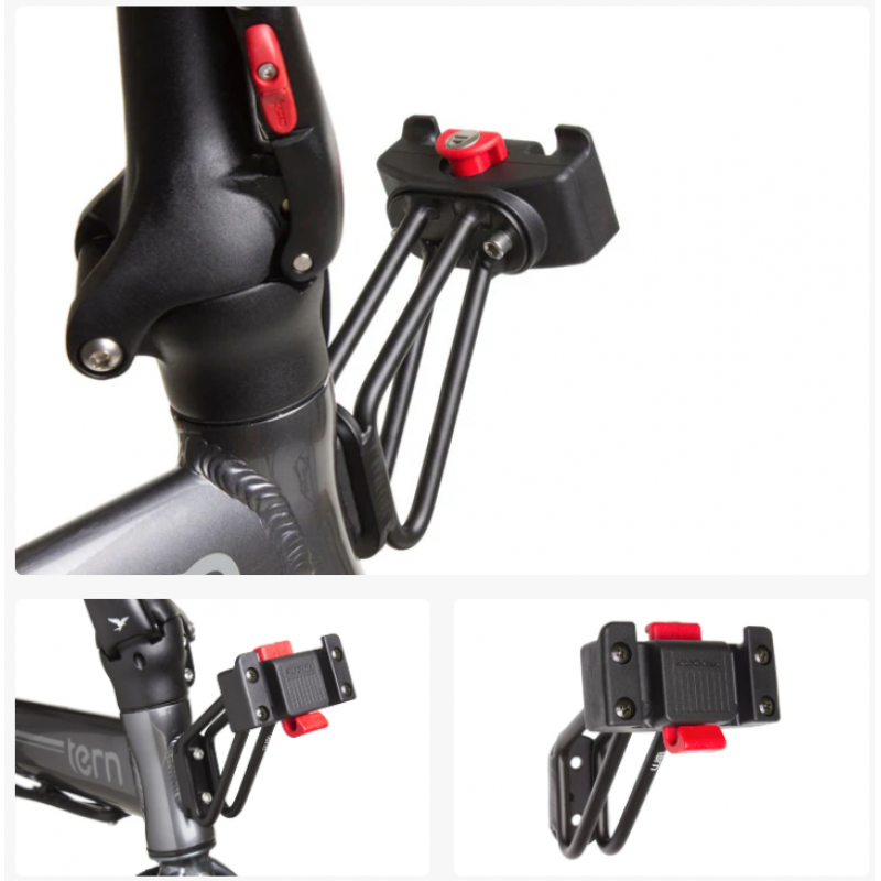 大部份TERN摺疊車都有個隱藏設置 – 除下車頭的品牌章後,你會發現有2個螺絲孔,裝上TERN LUGGAGE TRUSS 不鏽鋼碼,你就可以於車頭配備貨架,使你更輕鬆地隨時看到及拿到你的行裝。設有 KLICKfix™快速釋放連接器,按一個鈕可分開連接袋。可接袋子、籃子、貨架。